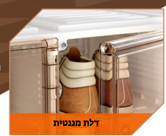 דלת מגנטית חכמה לסגירה קלה ובטוחה, המבטיחה שמירה על הנעליים מוגנות מאבק ולחות, עם עיצוב פרקטי ומודרני לנוחות מרבית.